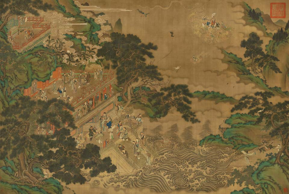 JP 仇英 群仙会祝 绢本 纵101.5厘米 横151厘米