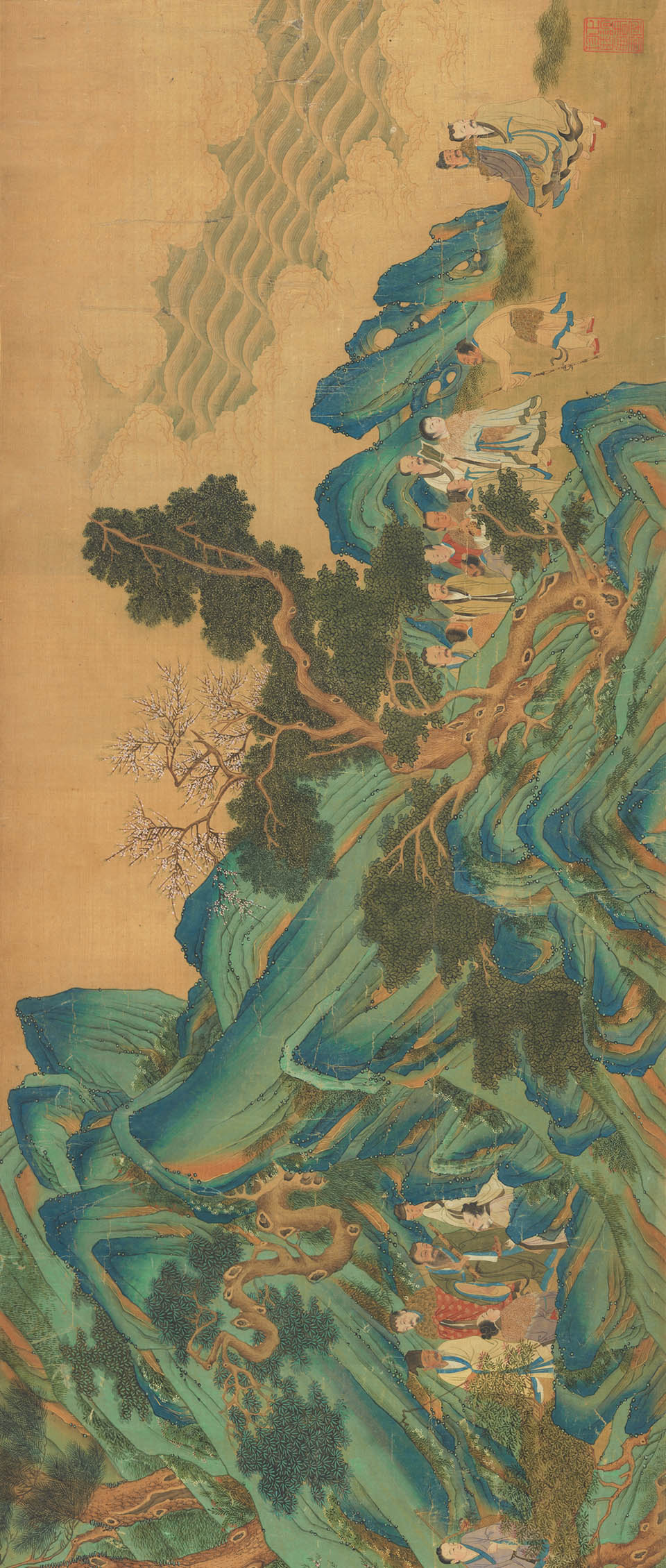JP 仇英 群仙高会图 绢本 纵34.5厘米 横385.9厘米