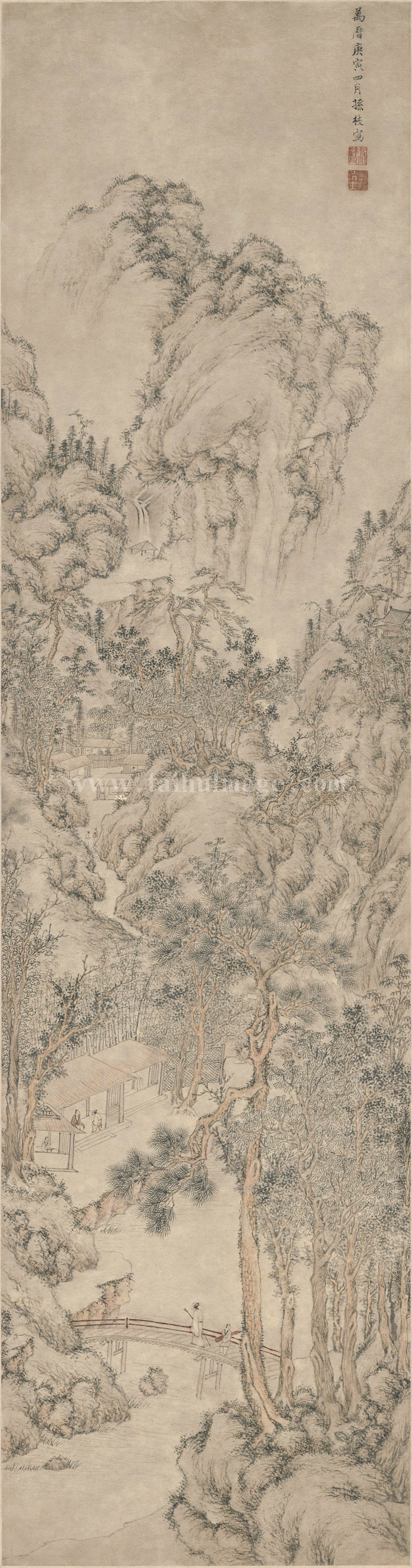 JP 孙克弘 携琴访友图 纸本 纵119.9厘米 横31.5厘米