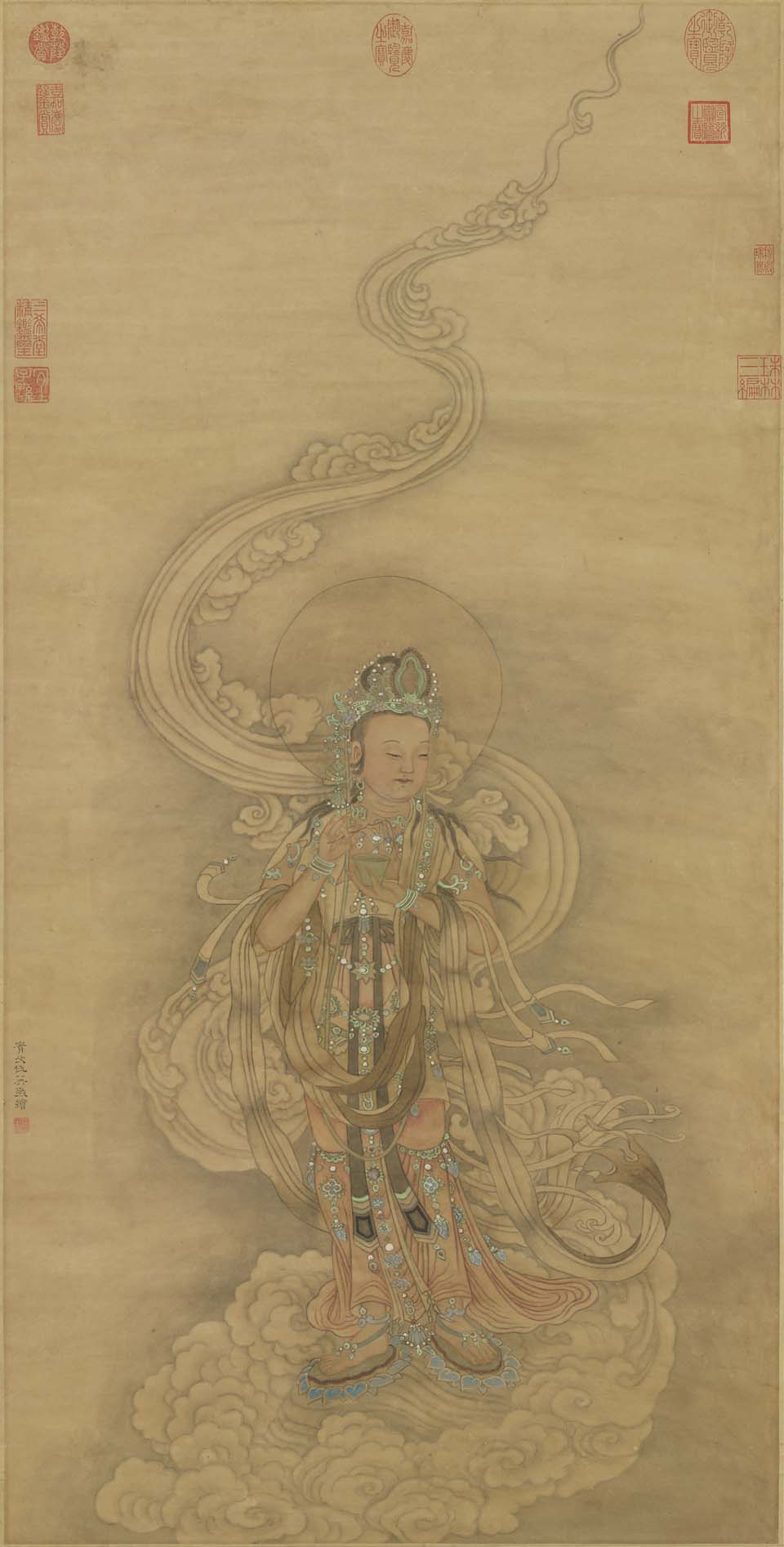 JP 仇英 观音菩萨 纸本 纵104.55厘米 横53厘米