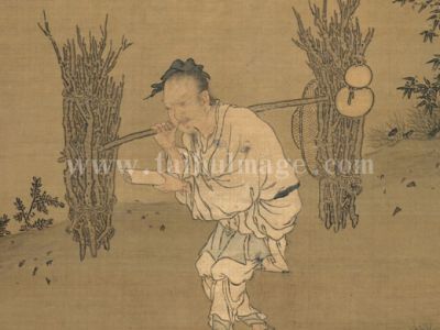 JP 石锐 朱买臣负薪读书 绢本 纵126厘米 横75厘米